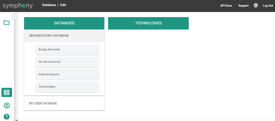 Sympheny Global Database | Organization Database (from Enterprise license on) | My User Database | |