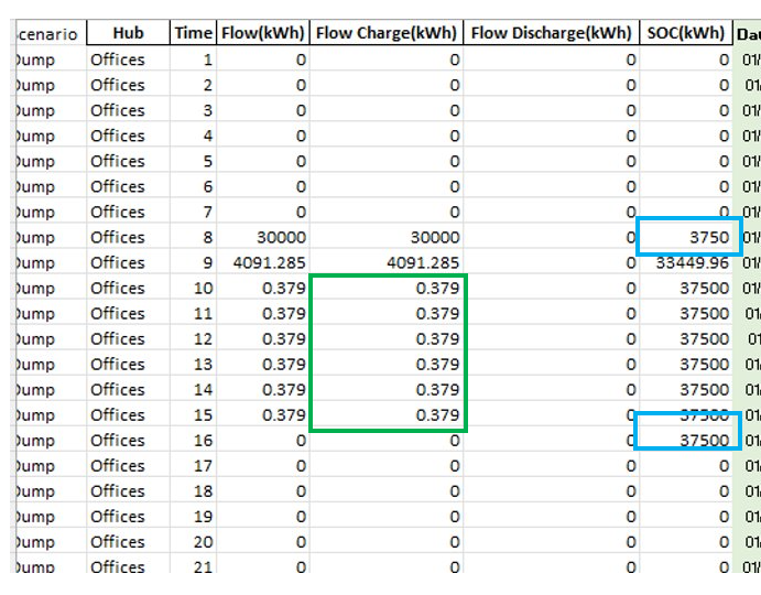 The SoC at 8 am (plug-in time) is 3'750 kWh (10% of the batterie size, 37'500 kWh).
