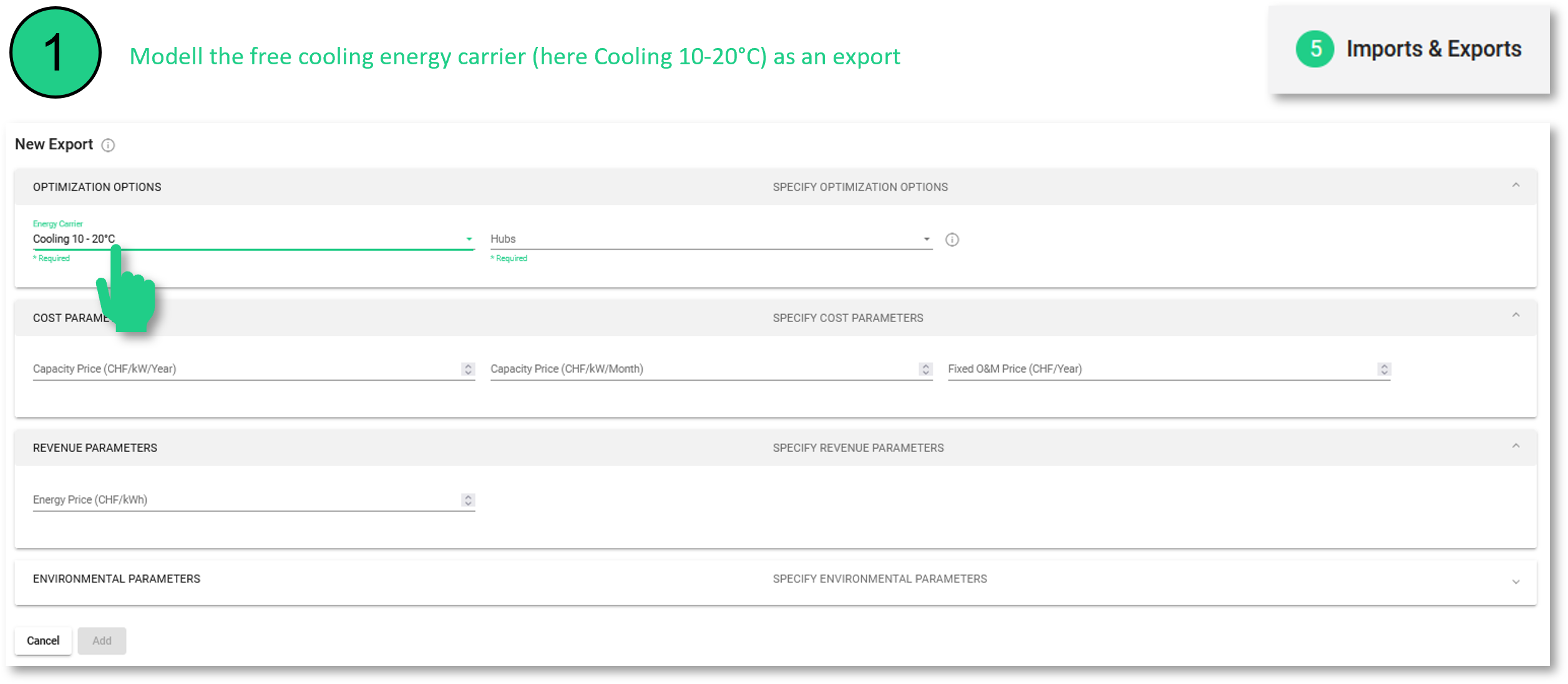 Figure 60 Modelling of free cooling as an energy carrier as an export