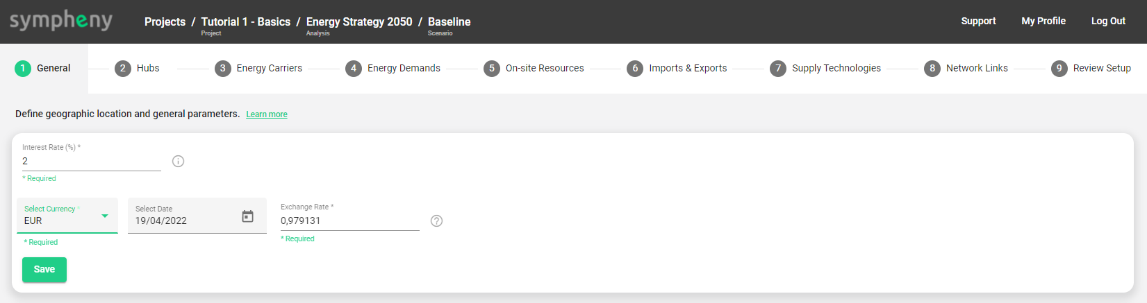 → Interest Rate [%]: The discount rate used to annualize the investment costs of the technology candidates. The same rate is applied to all technologies.
