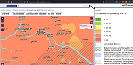 Abbildung 41 Geoportal-Karte zur Ermittlung der geothermischen Kapazität von Bohrlöchern