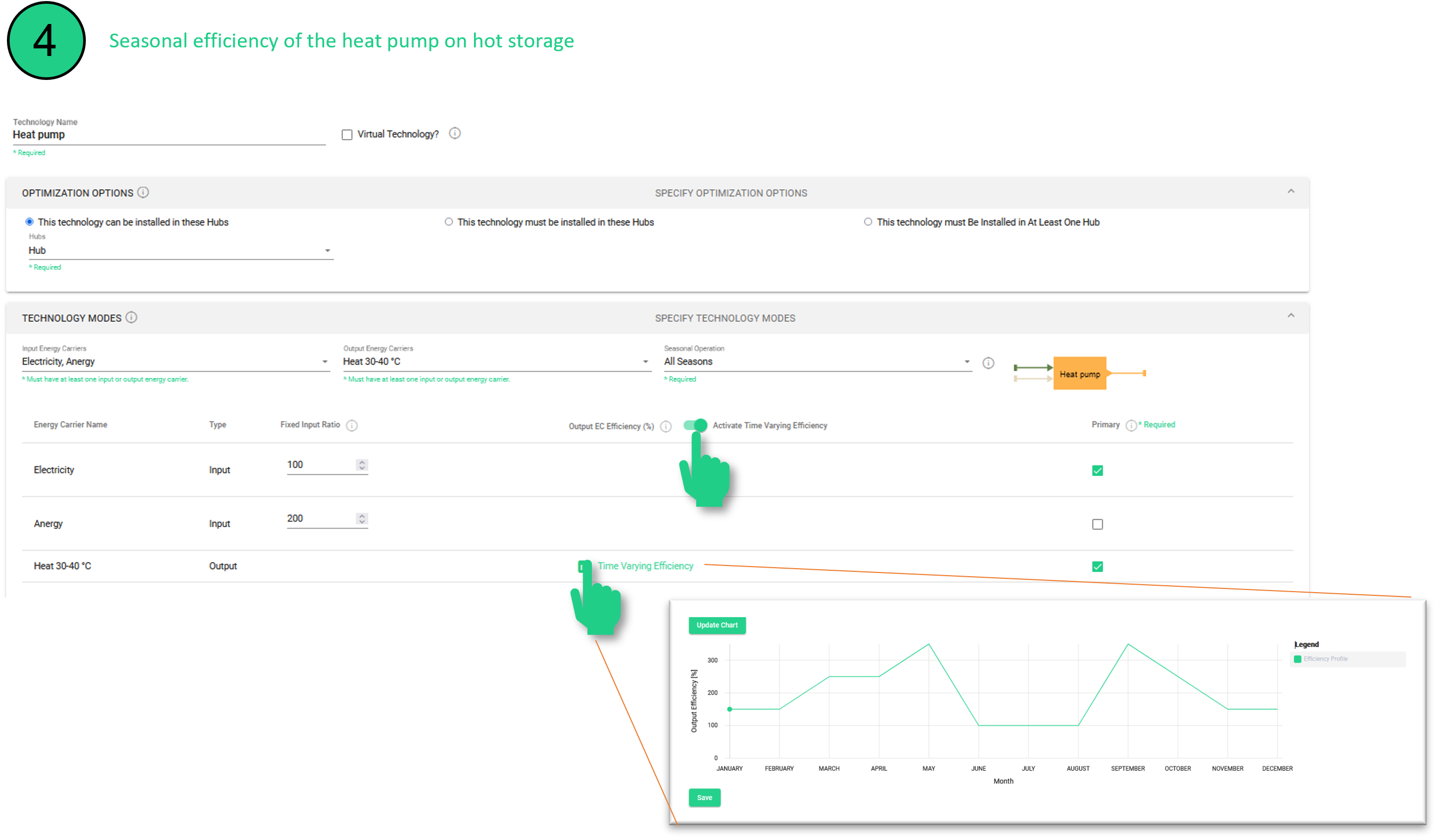 Figure 68 Specification of the seasonal efficiency of the heat pump for use with the ice storage
