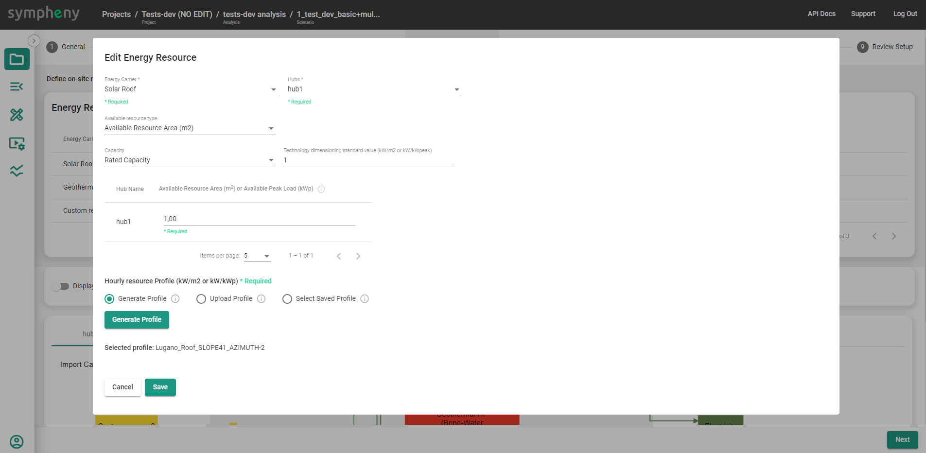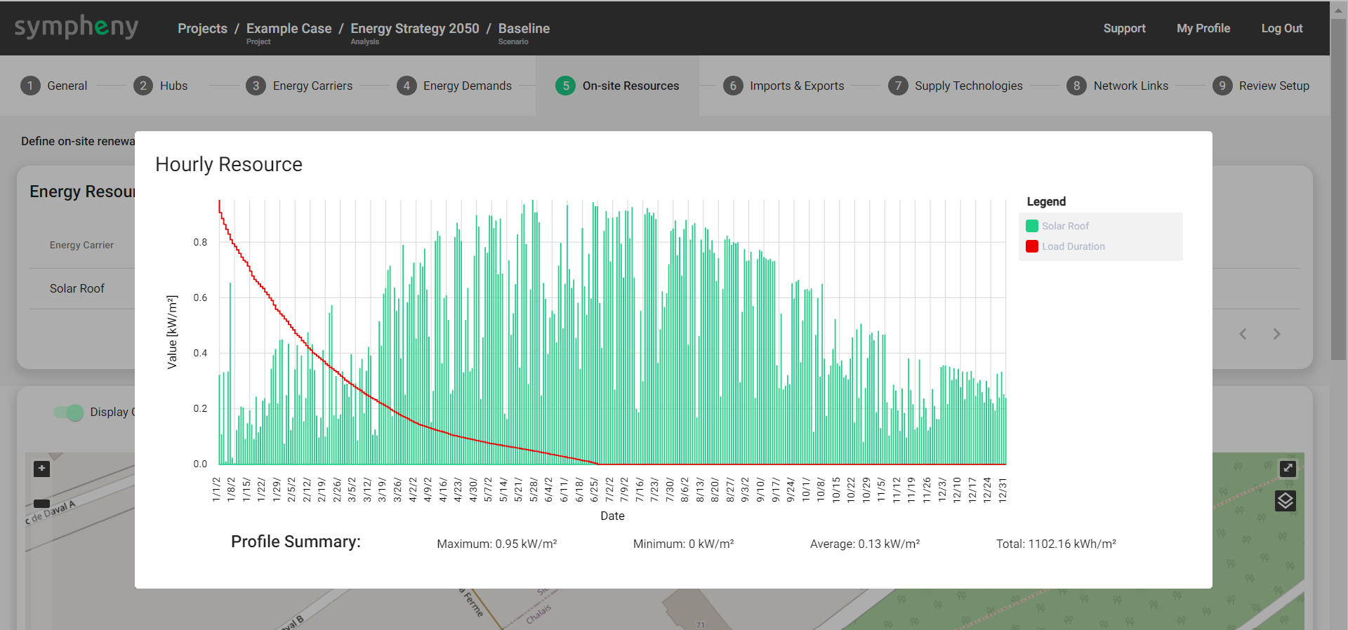 → Generate Profile: This allows you to take advantage of Sympheny's database of hourly resource profiles.