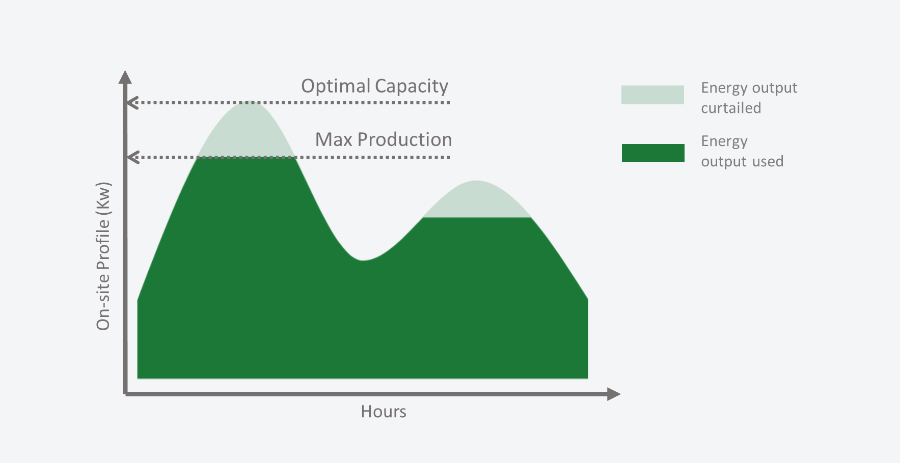 Energy produced from On-site Resource can be curtailed. Curtailment occurs when available On-site Resource leads to higher energy production than required by demand and export (see diagram below) at any given time.