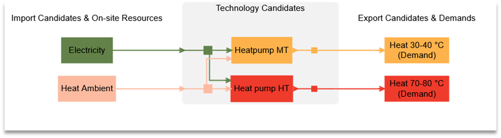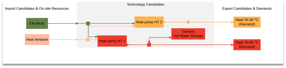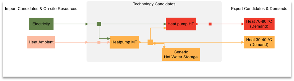 - Modellierung mehrerer Temperaturniveaus mit einer Standard-Wärmepumpe