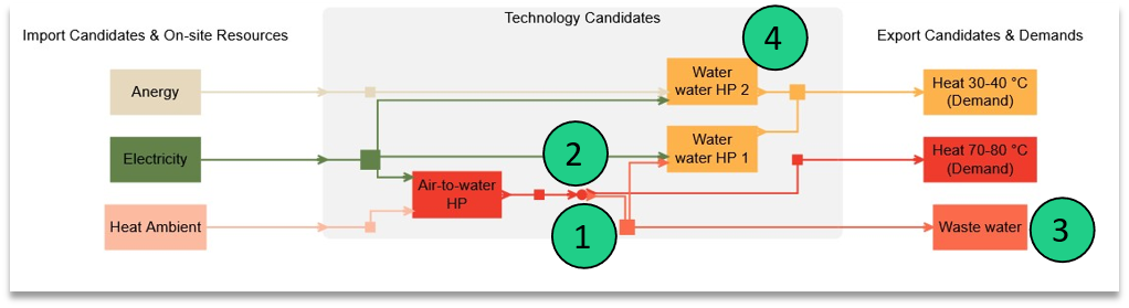 Figure 45 Creation of needed energy carriers for a heat pump operating on waste water