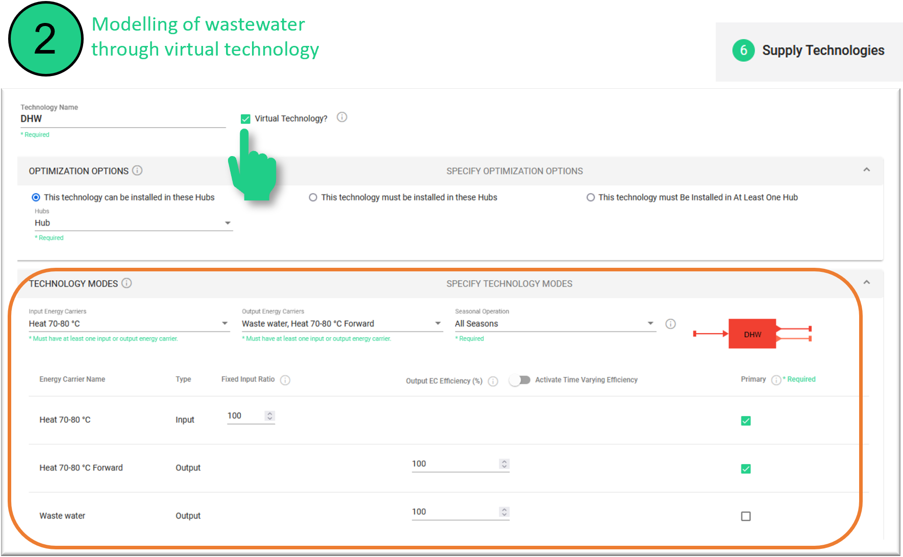 Figure 46 Modelling of wastewater as a virtual supply technology